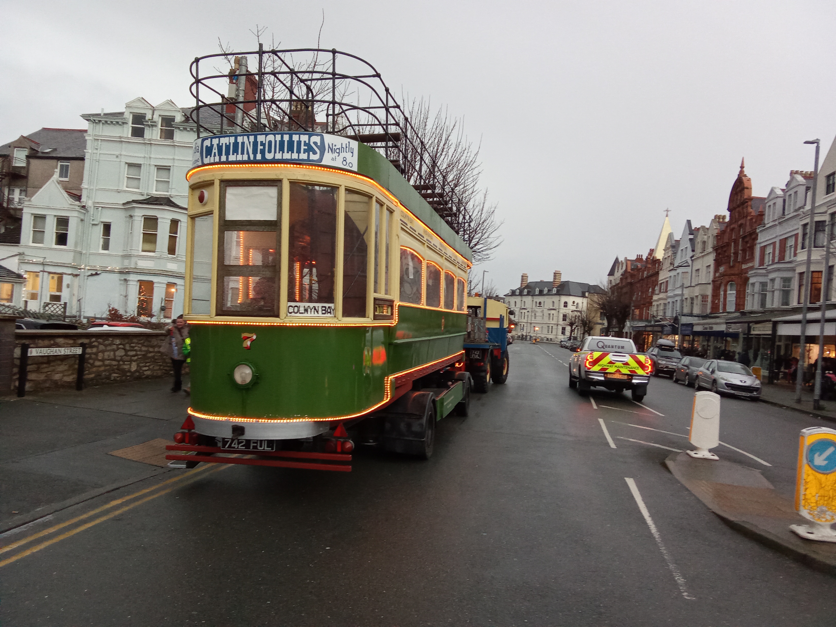 prior to being hauled along the old tram route to Llandudno